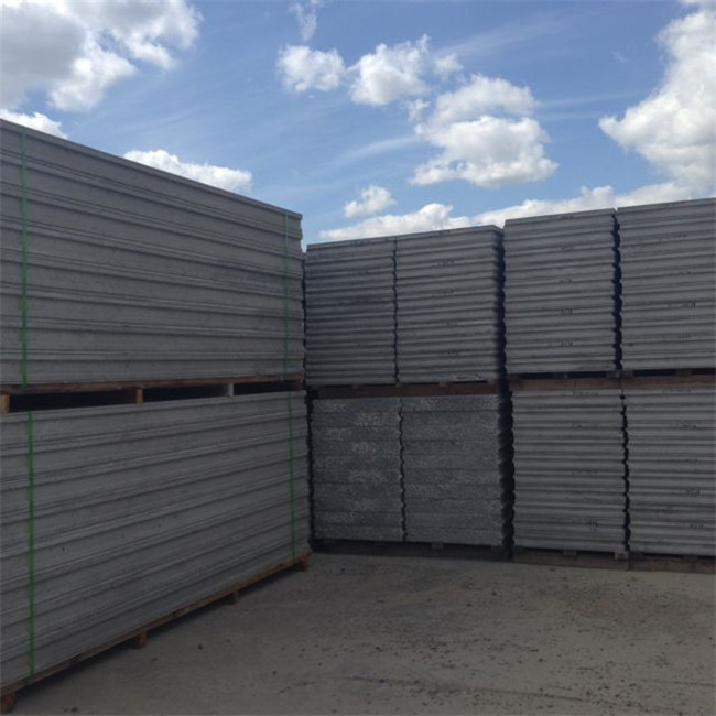 關(guān)鍵點(diǎn)2、輕質(zhì)墻板要正確碼放。不管什么樣的墻板產(chǎn)品,在脫模后往往處于漿料的初凝狀態(tài),此時(shí)板體具有了一定的強(qiáng)度,但距離達(dá)到使用強(qiáng)度還有不少差距,因此一定要將墻板碼放在平整的地方,否則板體極易出現(xiàn)變形,影響平整度。碼放一般采取碼垛的方式,根據(jù)不同產(chǎn)品,一般每垛可堆至1-3米高。為今后出貨方便,還要在垛的底部事先放置托盤,要確保托盤本身的質(zhì)量和放置的平整度,避免受力不均而出現(xiàn)輕質(zhì)墻板的彎曲。